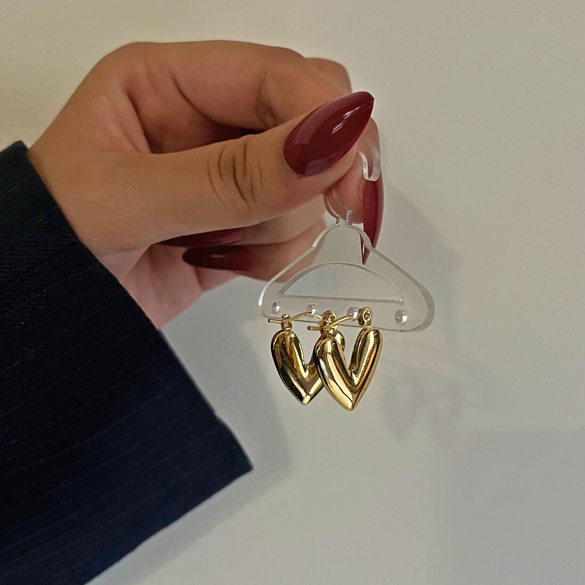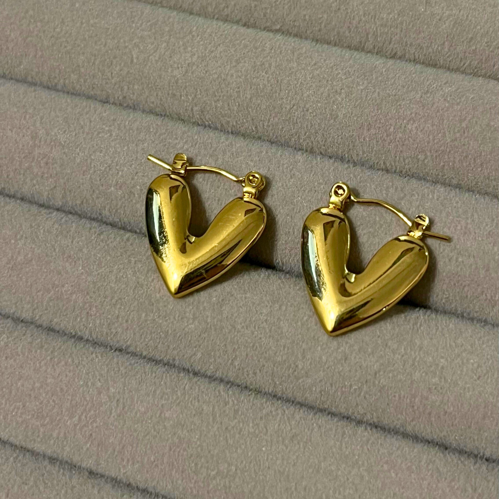 A dainty pair of heart earrings designed with a brilliant shine, perfect for everyday elegance.