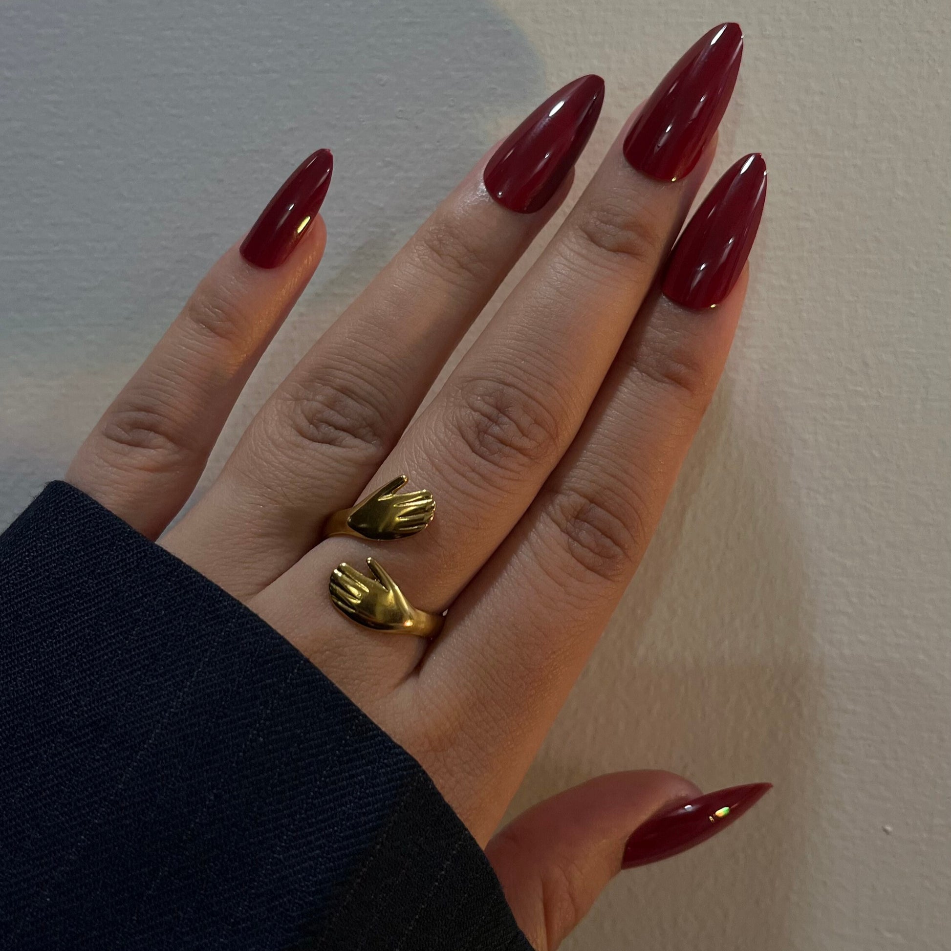 A delicate open band ring designed to wrap around your finger like a gentle hug â elegant, minimal, and full of warmth. This piece is Anti-Tarnish, Sweat- Proof, Water- Proof, Hypoallergenic. Elevate your look with Premium quality Hug Me ring.