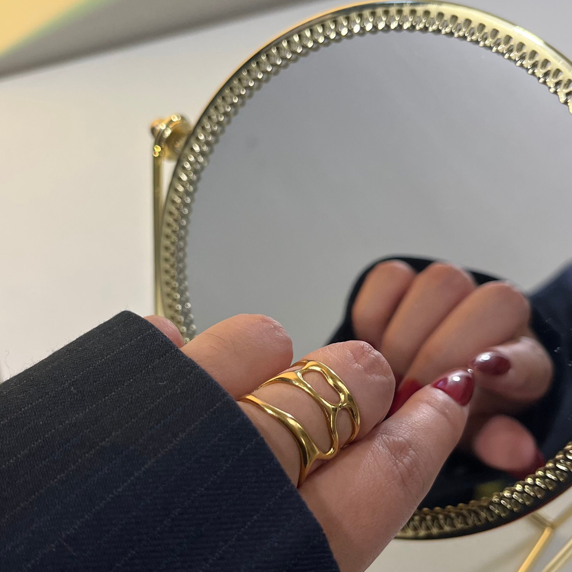 A timeless sleek cuff band designed for everyday elegance. This piece is Anti- Tarnish, Hypoallergenic , Sweat- Proof, Water -Proof. Elevate your look with Premium quality ring.