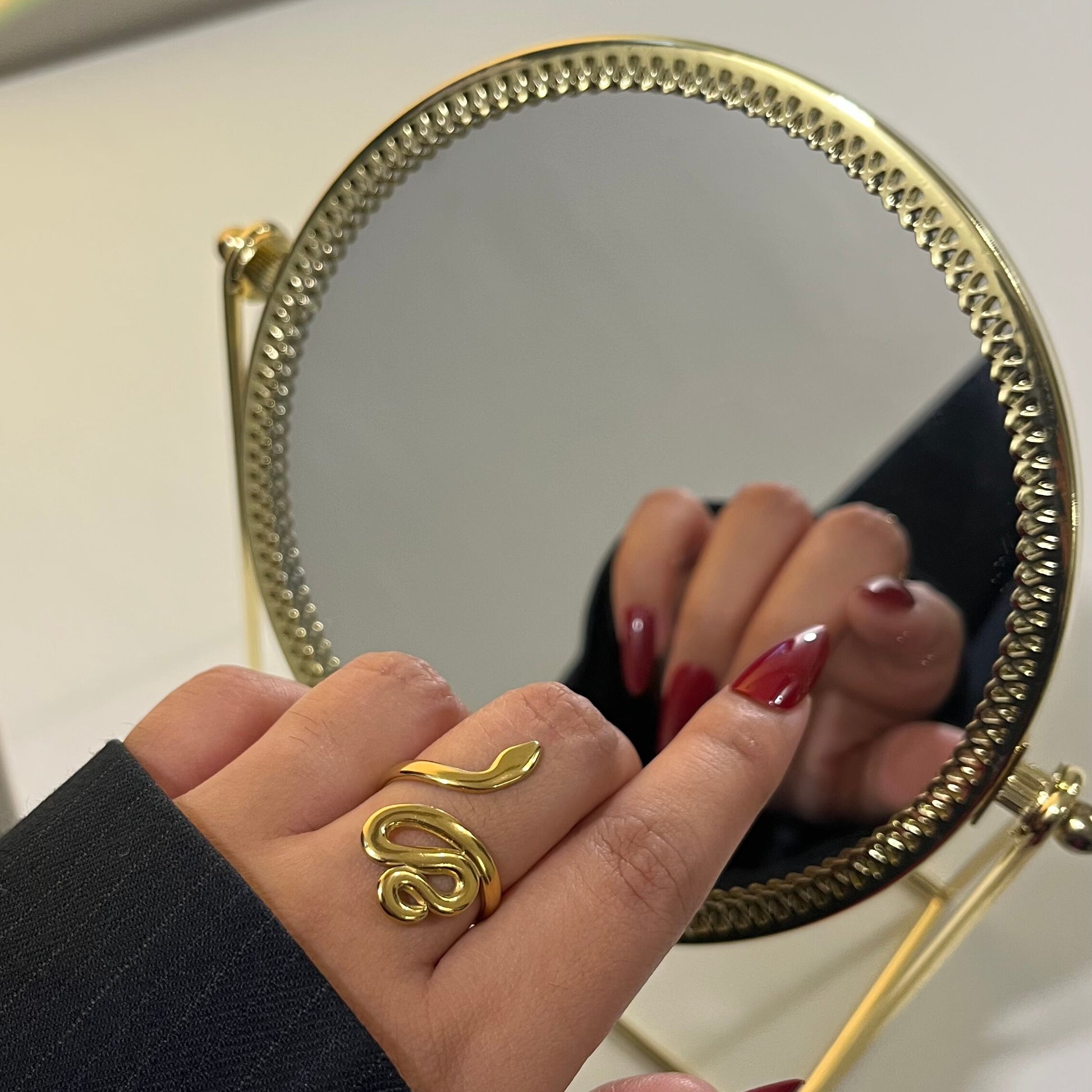 A bold serpent- inspired ring symbolising power and transformation, crafted with intricate detailing for a striking look. This piece isĀ Anti-Tarnish, Sweat- Proof, Water- Proof, Hypoallergenic.Ā Elevate your look with PREMIUM quality ring.Ā